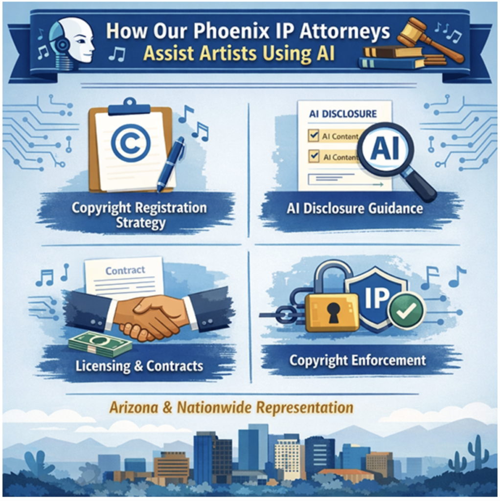 Our firm represents creators across Arizona and nationwide. We advise artists, producers, and content creators who integrate AI tools into their workflow.